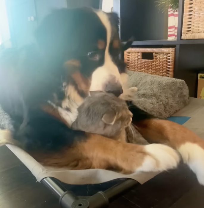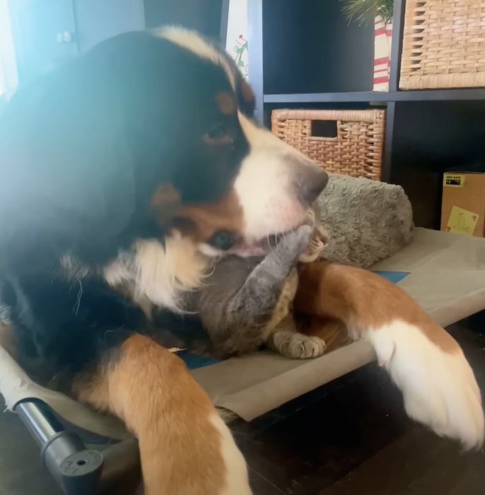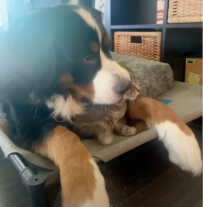 What do you think was going through Chippy’s head while he was buried under Theodore? Did he love being cuddled by his dog brother?