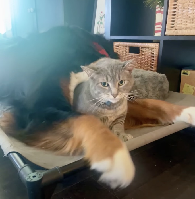 Theodore was surprised when Chippy came out from under him but that feeling went away almost immediately. It turned out Theodore really just wanted non-stop cuddles from Chippy.