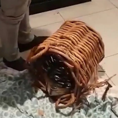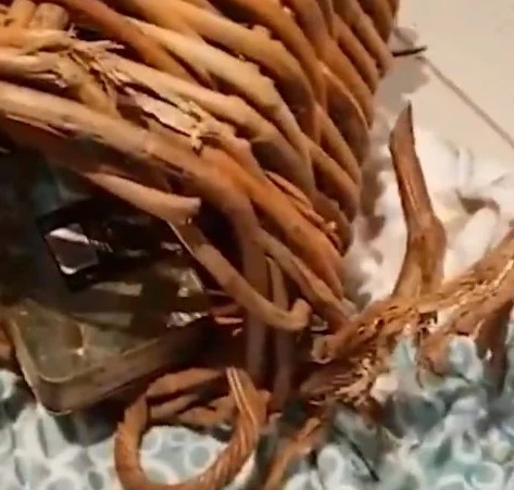 Baskets were strewn every which way with many of them having holes where they chewed through.
