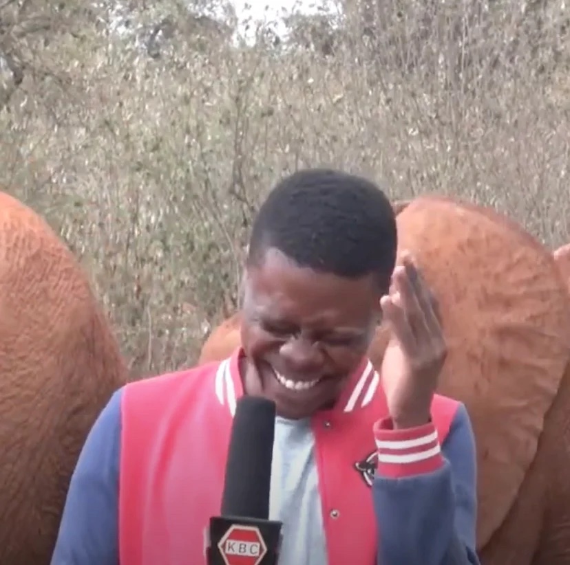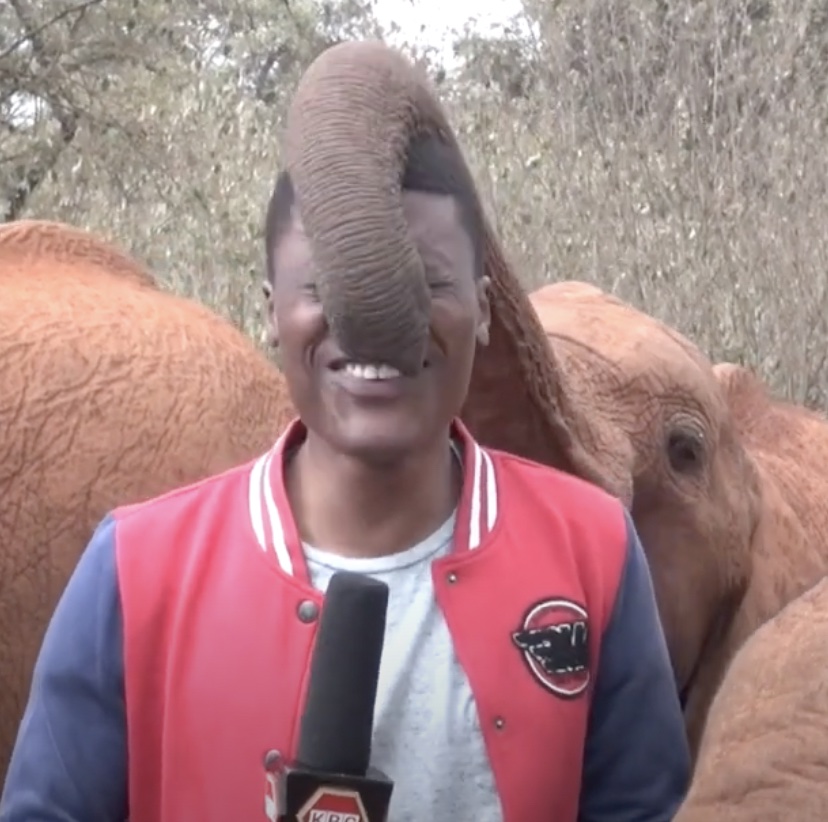 That is, until he couldn’t and exploded with laughter. Kaunda was shooting a segment for Kenya Broadcasting Corp., or KBC News, at the Sheldrick Wildlife Trust, which rescues and rehabilitates orphaned animals.
