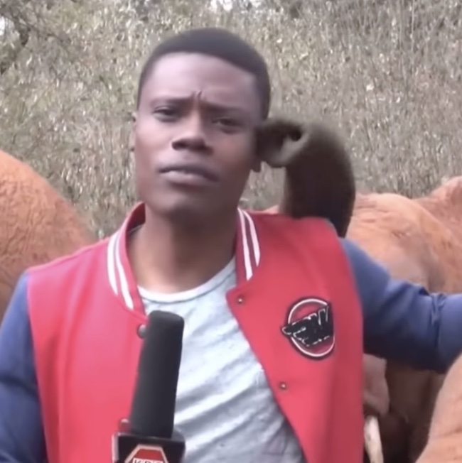 Even though Kaunda had an elephant groping his head during his newscast, he still tried to keep it together as best as he could.