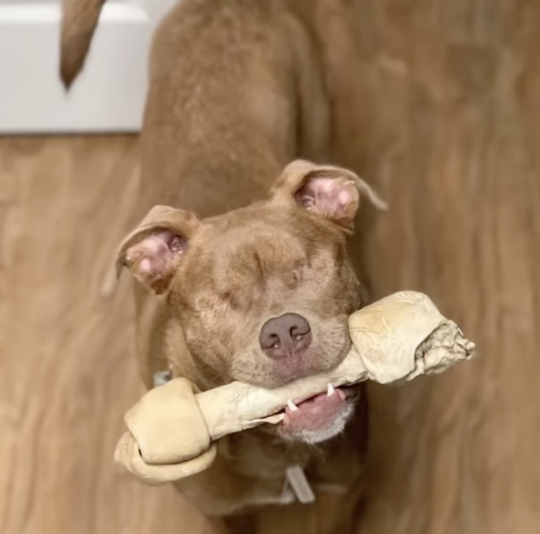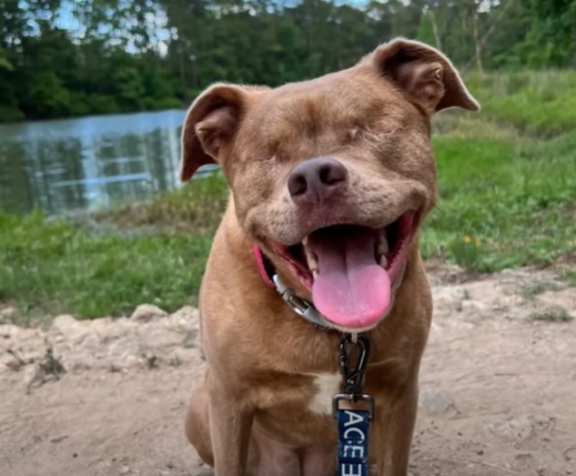 Even though Puddin doesn’t have her sight, she is still a very happy dog.