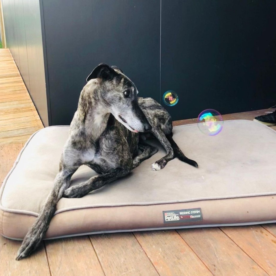 The greyhound has a notorious reputation in Australia, where Allie lives, because of an old 1927 law that states that greyhounds must be muzzled when in a public place.