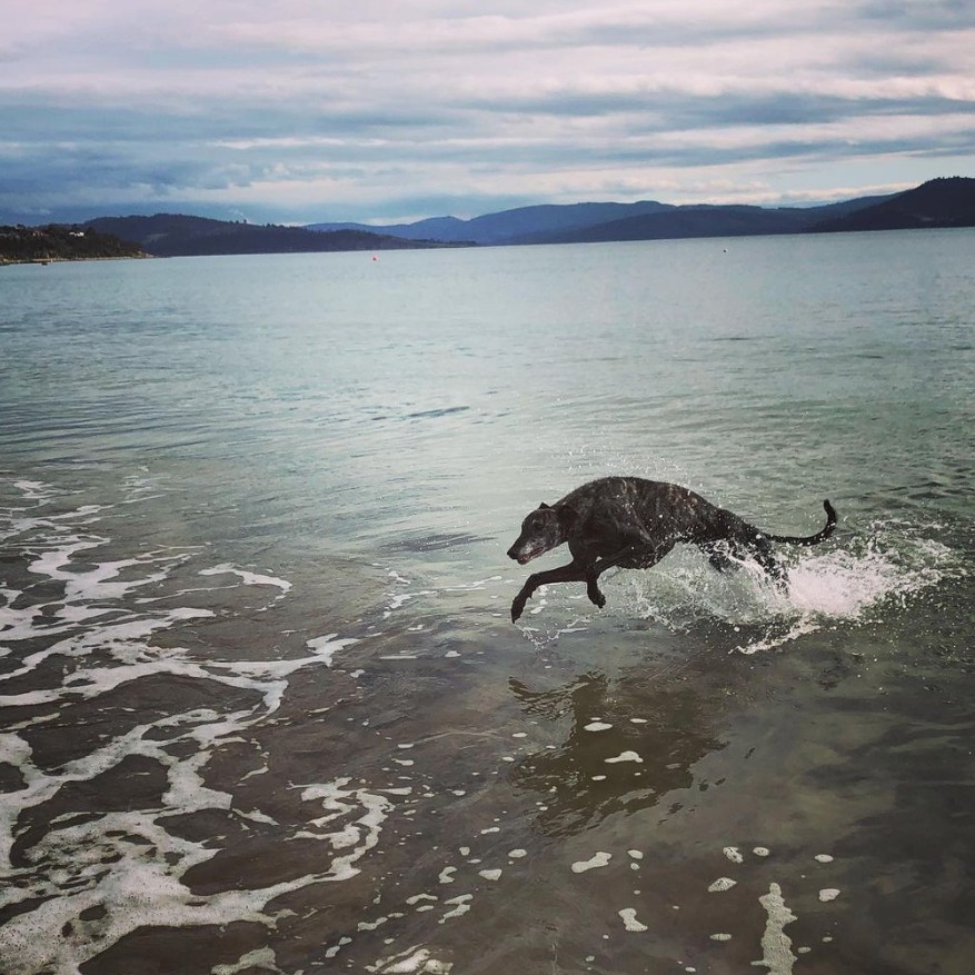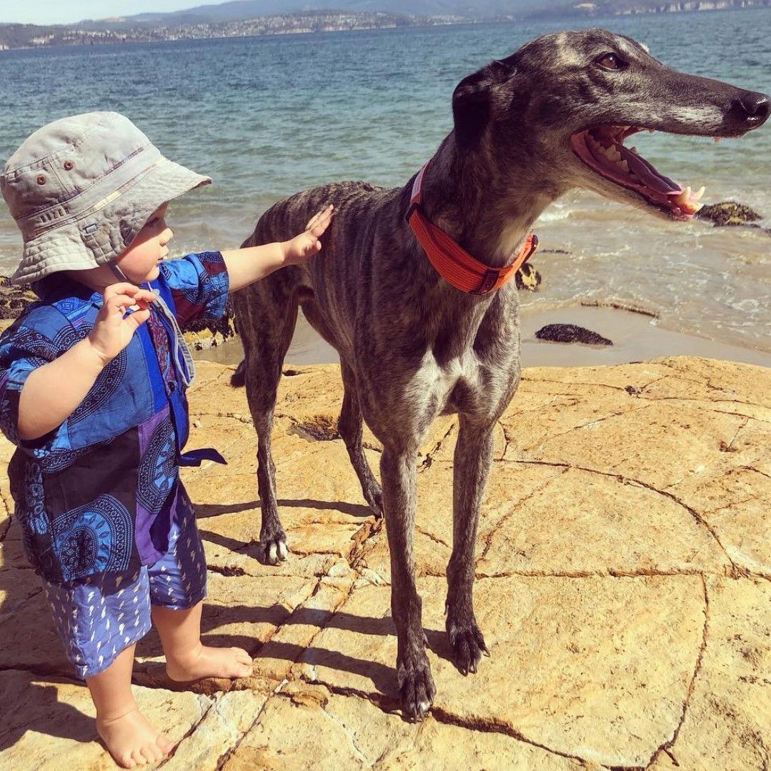 She and her husband went to Brightside Farm Sanctuary in Tasmania, which rescues and takes in greyhounds and other animals then finds them permanent homes.