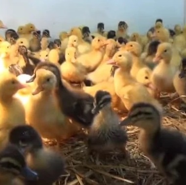 The video opens up with the ducklings all hanging out under a few heat lamps to keep warm.