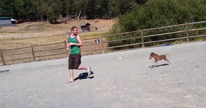 Guy Getting Chased By 3-Day-Old Miniature Horse Is Cuteness Overload