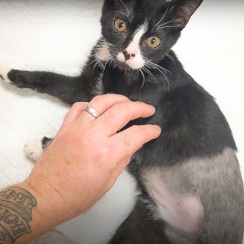 Despite the long ride, he made it to Zorro’s side and picked up the kitten.