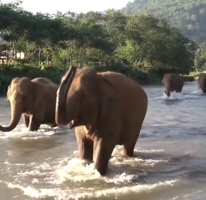 The video shows a herd of Kham Lha elephants who were thrilled to see a man named Darrick.