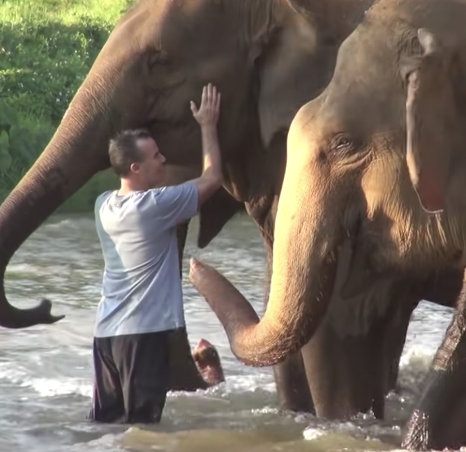 Darrick, who works for Thailand elephant rescue and rehabilitation organizations Elephant Nature Park/Save the Elephant, had been away from the herd for 14 months.