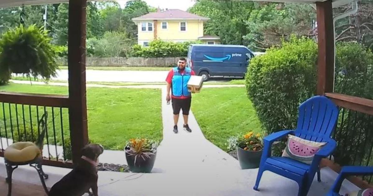 This Amazon driver had an interesting day on the job when he had to meet the homeowner’s dog.