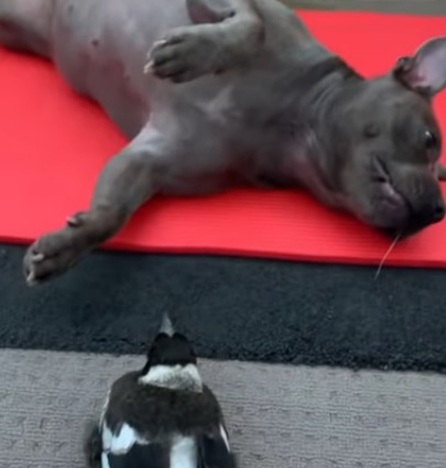 If you never thought you’d see a Staffordshire bull terrier befriend a magpie bird, get ready to have your mind blown.