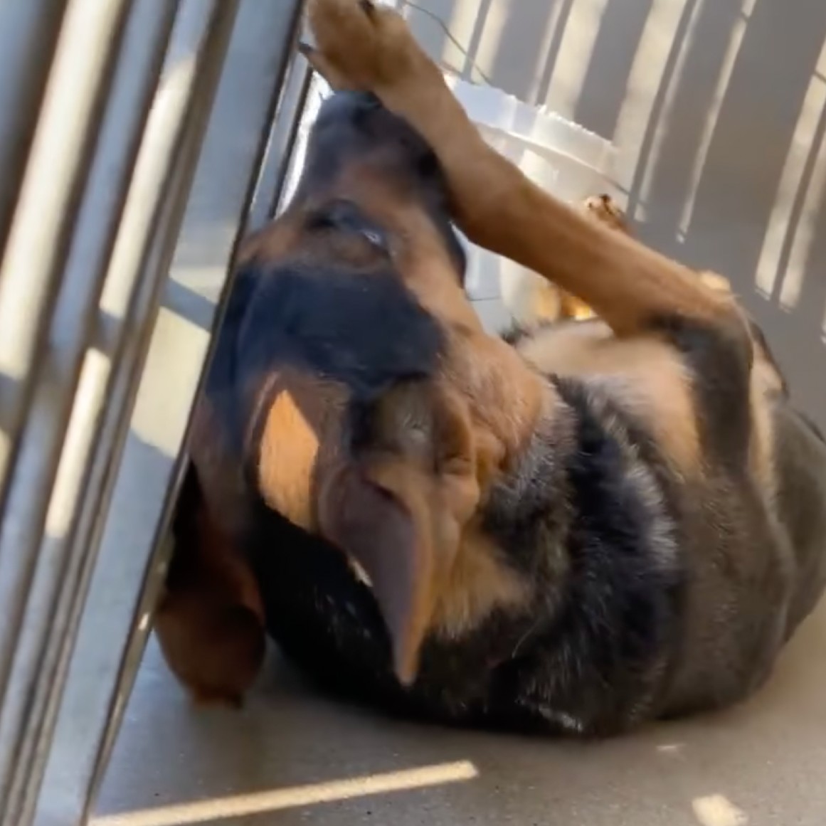 In the video shared by the shelter, you can see how excited Maxine is every time someone passes by her crate.