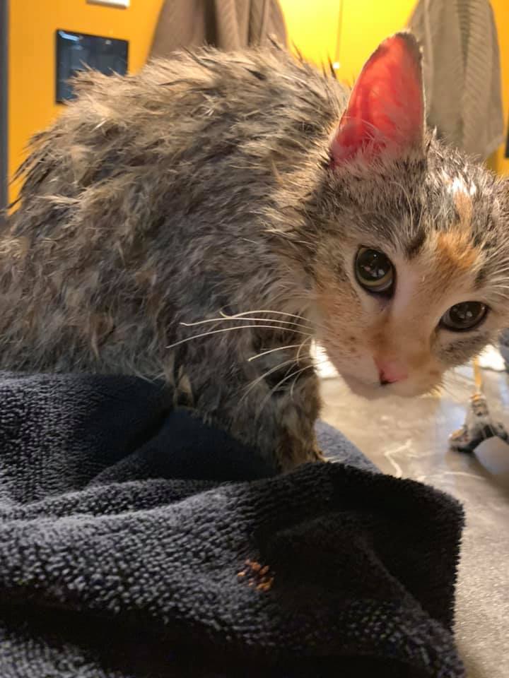 Tiny freezing stray kitten ‘knocks’ on fire station window and begs for their help